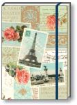 Notatnik w twardej oprawie z kremowymi kartkami w delikatną linie, zamykany na gumkę. Format A6, 96 kartek.