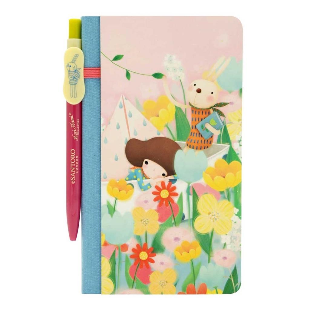 Pięknie wykonany notes z kartkami w linie. Do notesu dołączony jest długopis przymocowany tasiemką.