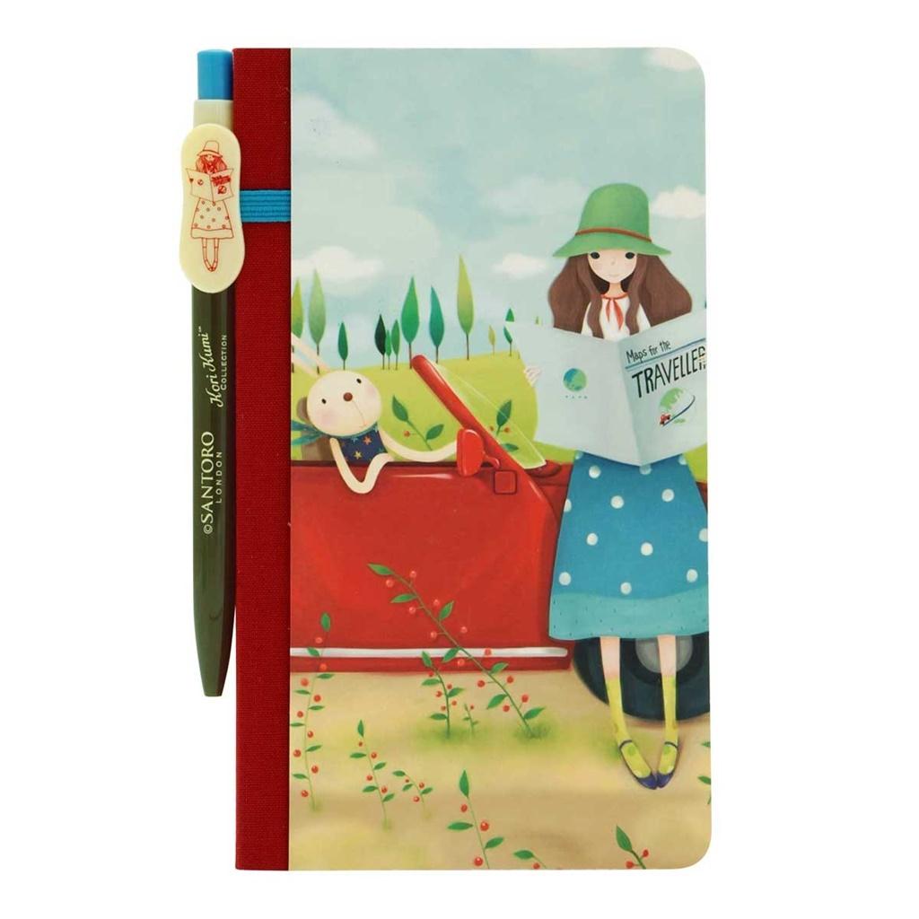 Pięknie wykonany notes z kartkami w linie. Do notesu dołączony jest długopis przymocowany tasiemką.