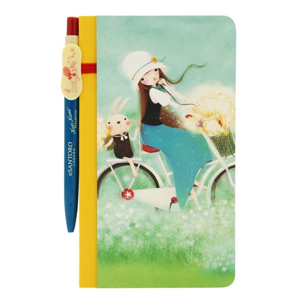 Pięknie wykonany notes z kartkami w linie. Do notesu dołączony jest długopis przymocowany tasiemką.