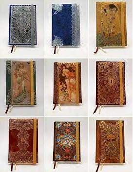 Notesy książkowe z blokiem notatnikowym na papierze ecru w oprawie metalizowanej, z wewnętrzną kieszonką i gumką zamykającą notes.  Uwaga !!!  Wzór wysyłany losowo !