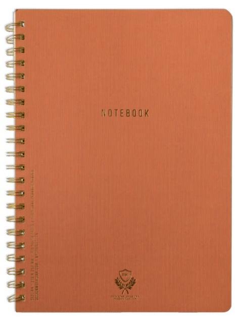 Notatnik ma zaokrągloną, miękką okładkę z miejscem na Twoje dane i złotym akcentem.