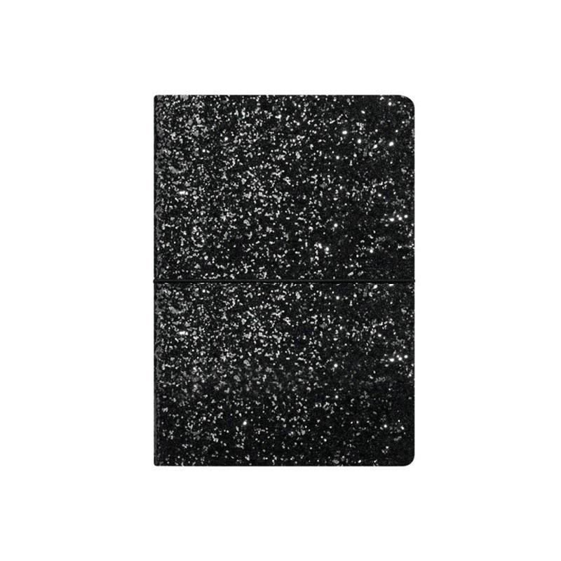Notes 96 kartek w formacie A5. Okładka z brokatu w kolorze czarnym. Zmieści się w każdej torebce czy plecaku, idealny na drobne notatki.
