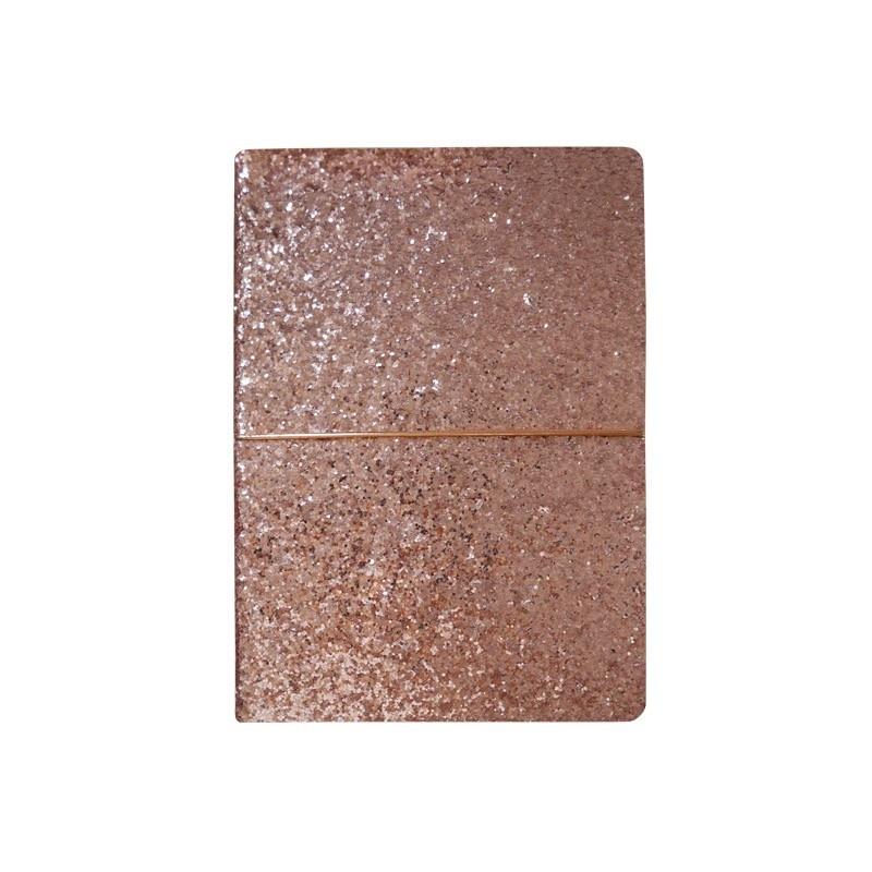 Notes 96 kartek w formacie A5. Okładka z brokatu w kolorze różu. Zmieści się w każdej torebce czy plecaku, idealny na drobne notatki.