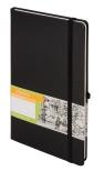 Notes A 5 Oprawa twarda, ekologiczna z surowców naturalnych. Papier 80 g. Pierwsza i ostatnia strona notesu wykonana z ozdobnego papieru w kolorze granatowym. Koperta z tyłu na luźne karteczki. Specjalna gumka na długopis. Wstążka w kolorze okładki. Notes zamykany na gumkę. Ilość stron: 160 Wymary: 130 x 210 mm