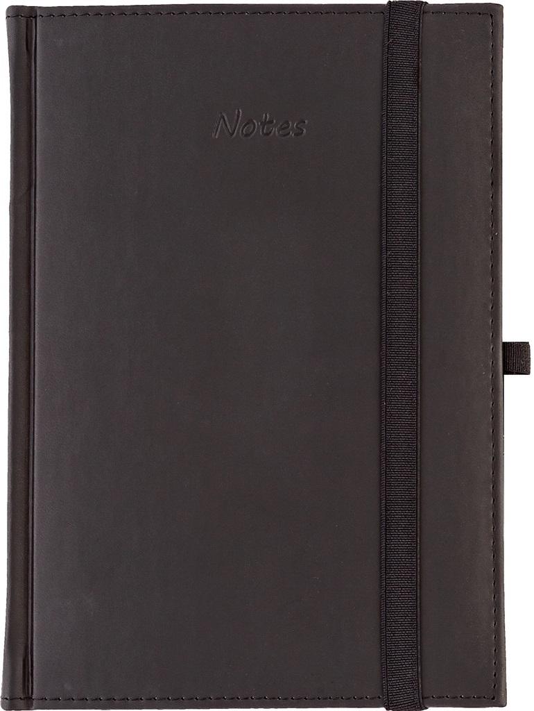 Miękka, przyjemna w dotyku oprawa wykonana z materiału pokryciowego Vivella. Notes zamykany na gumkę, posiada również gumkę na długopis. W górnej części okładki tłoczenie napisu notes. Drukowany na papierze białym, zadruk w kratkę; bloki szyte nićmi; kapitałka i tasiemka białe; posiada na każdej stronie miejsce na wpisanie daty. Pakowany pojedynczo w woreczek foliowy.