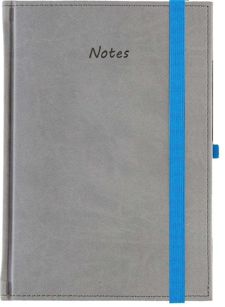 Miękka, przyjemna w dotyku oprawa wykonana z materiału pokryciowego Vivella. Notes zamykany na gumkę, posiada również gumkę na długopis. W górnej części okładki tłoczenie napisu notes. Drukowany na papierze białym, zadruk w kratkę; bloki szyte nićmi; kapitałka i tasiemka białe; posiada na każdej stronie miejsce na wpisanie daty. Pakowany pojedynczo w woreczek foliowy.