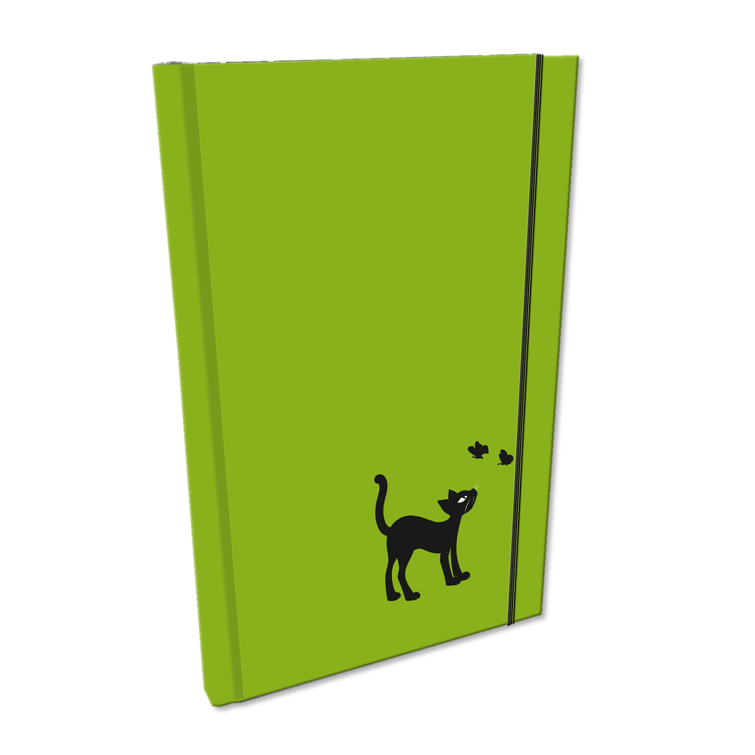 Opakowanie Notes A5 z gumką kratka soft touch uv kot w zieleni BB230024