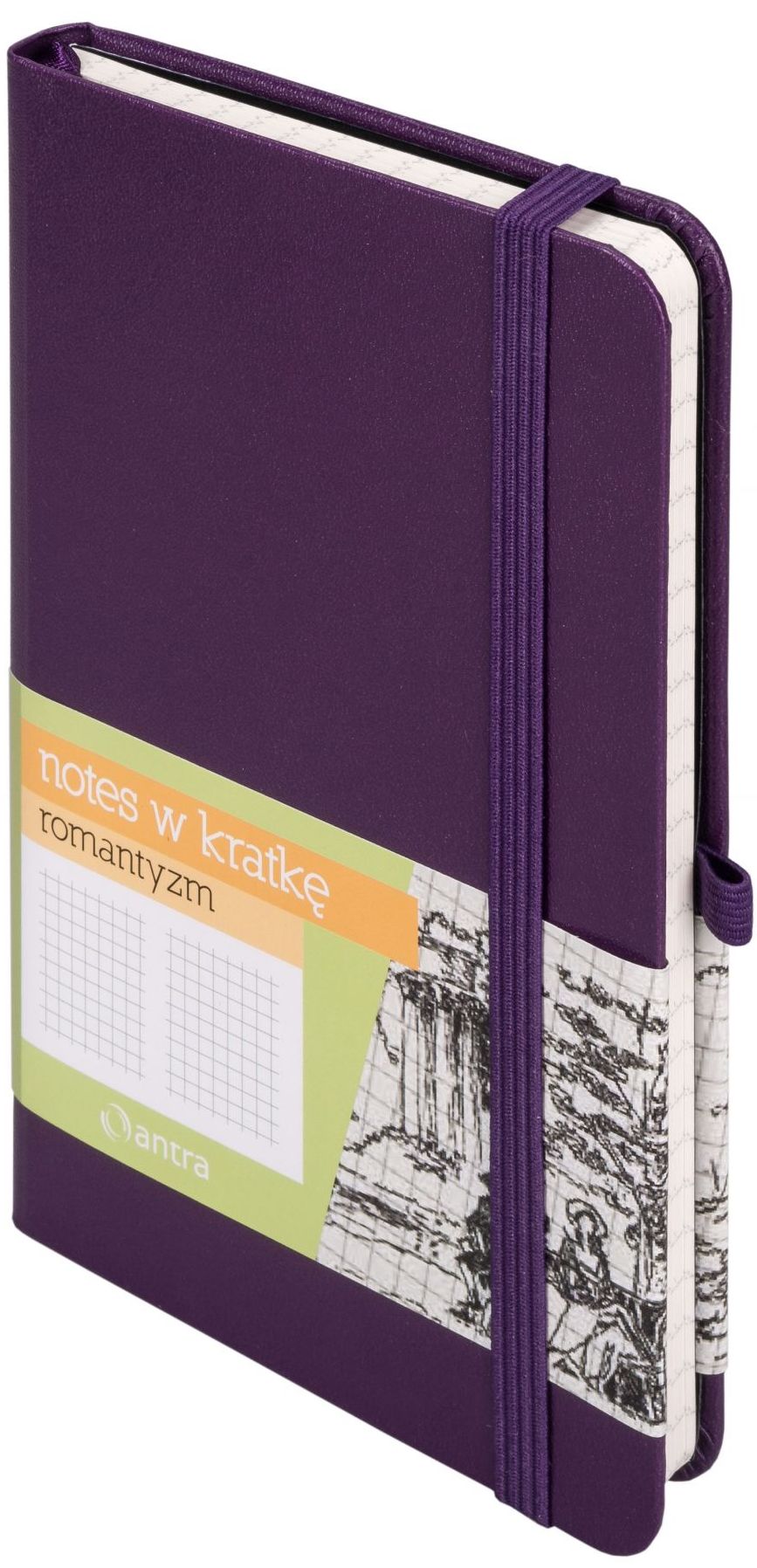 Notes A6 kieszonkowy z gumką Romantyzm kratka fioletowy