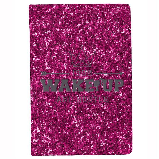 Notes brokatowy A5, twarda oprawa pokryta brokatem plus zadruk; strony wewnętrzne: 80 g, 96 kartek, 1-kolorowy zadruk wewnątrz