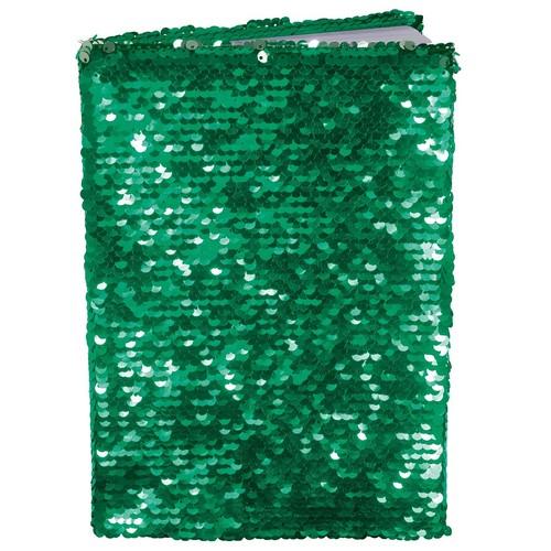 Notes w formacie A6, okładka ozdobna wykonana jest ze sztywnej tektury, zdobionej dwukolorowymi cekinami. Ulkład cekinów umożliwia zmianę ich położenia co daje bardzo ciekawe efekty. Karteczki w notesie w kolorze białym z nadrukowanymi kropeczkami co ułatwia pisanie w lini prostej.