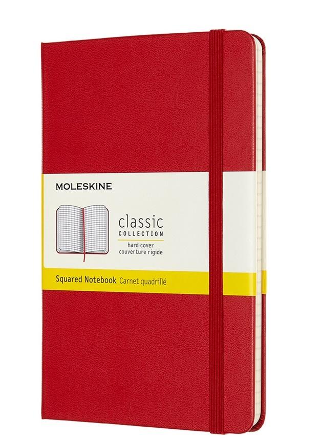 Wystarczająco mały, aby zmieścić się w każdej torbie, wystarczająco duży, aby zmieścił największe pomysły. Nowy, średniej wielkości, klasyczny notes Moleskine zawiera zaokrąglone narożniki, które chronią przed wybojami na drodze i elastyczne zamknięcie, aby zachować twoje odręcznie zapisane myśli i twórcze treści. Dopasowana kolorystycznie wstążka zakładki pomaga śledzić projekty, a wewnętrzna kieszeń z możliwością rozbudowy jest idealna do przechowywania luźnych notatek zebranych w ciągu dnia. Wyróżniające się oznaczenie Moleskine ""W przypadku zagubienia"" na stronie tytłowej zachęca do dodania swojego nazwiska, danych kontaktowych i nagrody - na wypadek, gdybyś zgubił swoje niezbędne notatki. Dostępny w klasycznej czerni, szkarłacie i szafirowym błękicie, a także w wersji w linie, gładki, w kratkę i w kropki, ten średniej wielkości towarzysz notatek jest zaprojektowany tak, aby towarzyszyć Ci wszędzie, gotowy do przechwytywania inspiracji za każdym razem, gdy przyjdzie. Kolorowy twarda okładka Klasyczny notes Zaokrąglone rogi Elastyczne zamknięcie Papier koloru kości słoniowej Moleskine Dopasowana zakładka wstążki Papier: 70 g / m2, bezkwasowy, kość słoniowa, podszewka ""W wypadku zgubienia"" wydrukowany na stronie tytułowej Rozszerzana kieszeń wewnętrzna z tyłu Wielokrotnego użytku papierowa opaska B-SIDE z dodatkowymi narzędziami drukowanymi Leży płasko, otwiera się przy 180