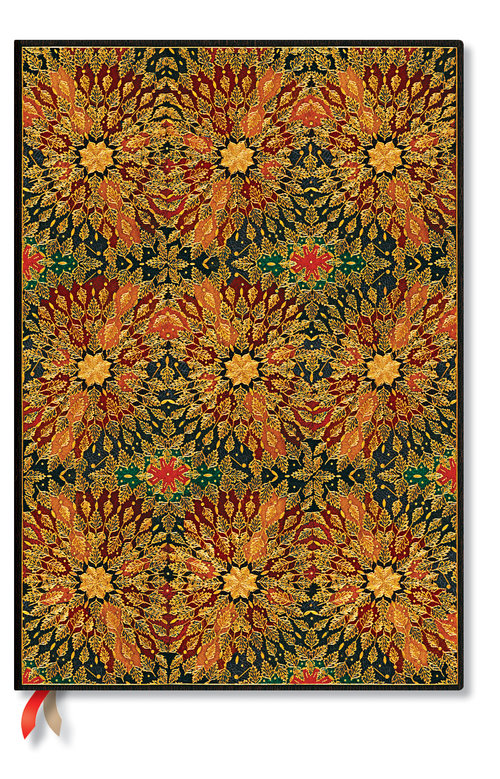 Notatnik Grande gładki niezwykłej marki Paperblanks. Pięknie zdobiona, wytłaczana okładka o niesamowitej fakturze. Koperta wewnątrz tylnej okładki na luźne, drobne notatki. Satynowa wstążka jako zakładka. Papier ekologiczny 120g. Notatnik szyty. Zamykany na gumkę. Ilość stron 128. Wymiary: 210x300 mm.