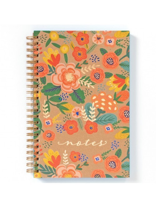 Ozdobny notes z grafiką w drobne kwiaty. Spiralowany notes posiada 192 strony kremowego papieru o gramaturze 70g. Całość okryta jest grubą okładką z naturalnej tektury 650g z recyklingu.