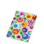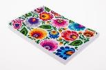 Notesy w oryginalne kwiatowe wzory - na ludowo. Na kartkach w kratkę miniaturki kwiatów z wycinanek łowickich w trzech wersjach kolorystycznych.