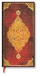 Notatnik w linie Golden Trefoil Slim niezwykłej marki Paperblanks. Oprawa twarda, zamknięcie na gumkę. Pięknie zdobiona, wytłaczana okładka o niesamowitej fakturze. Koperta wewnątrz tylnej okładki na luźne, drobne notatki, wizytówki lub paragony. Satynowa wstążka jako zakładka. Papier ekologiczny 85g. Notatnik szyty. Ilość stron 176. Wymiary: 95x180 mm.