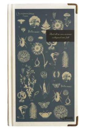 Notes - zwierzęta i rośliny, niebieski - 96 kartek, 10x18 cm. Posiada twardą oprawę, papier kremowy w linie oraz metalowe narożniki.