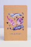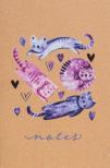 Okładki notesu z ilustracją kotów i serduszek oraz subtelnie tłoczone elementy grafiki i napisy, tworzą piękne zestawienie z naturalną tekturą. Kolor nici, pierwszej i ostatniej strony notesu uzupełniają stylowy wygląd notesu.