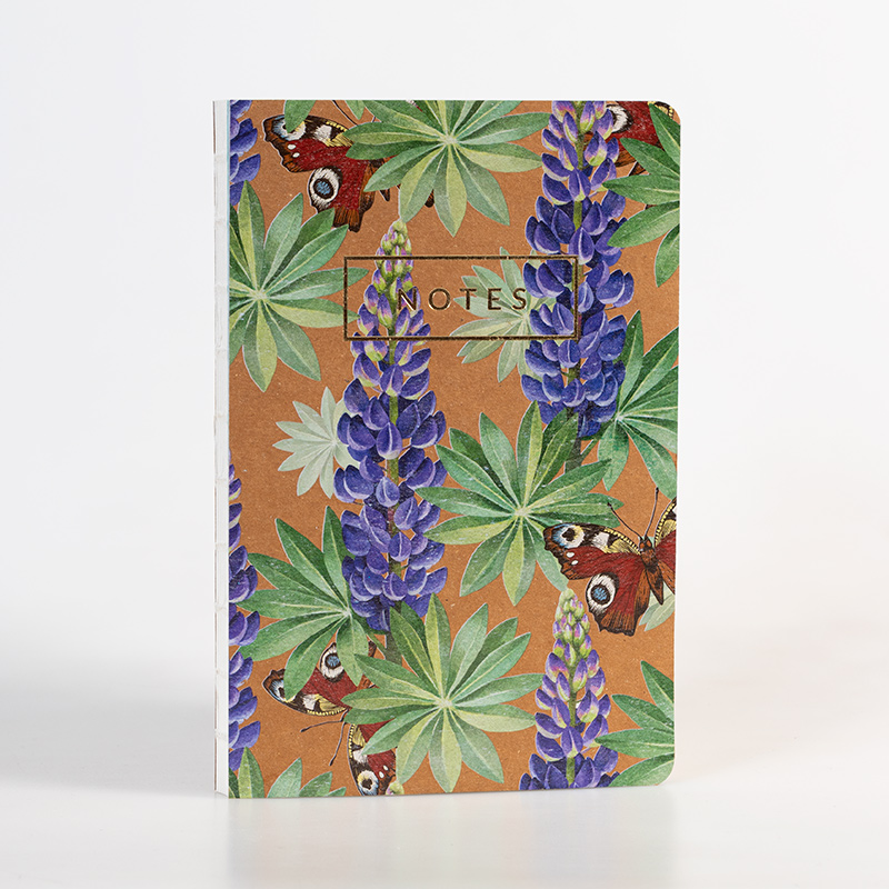 Okładka notesu z ilustracją w dojrzewający wczesnym latem łubin oraz tłoczony na złoto napis tworzą piękne zestawienie z naturalną tekturą.