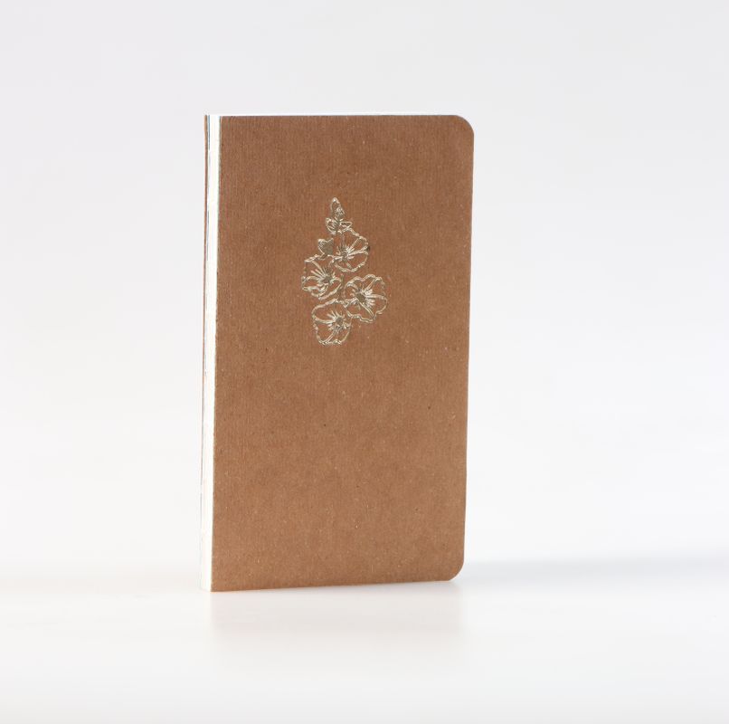 Okładka notesu z pięknym, złotym tłoczeniem w kwiat polskiej malwy podkreśla minimalistyczną, gustowną stylizację.