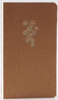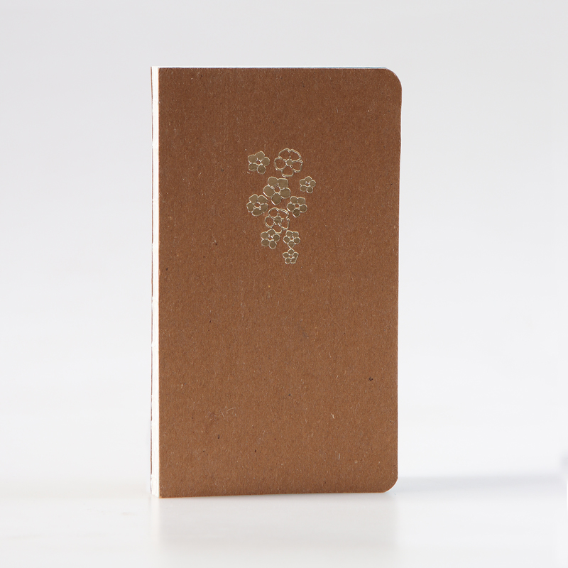 Okładka notesu z pięknym, złotym tłoczeniem w kwiaty niezapominajki podkreśla minimalistyczną, gustowną stylizację.
