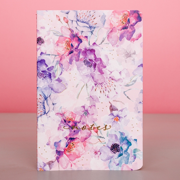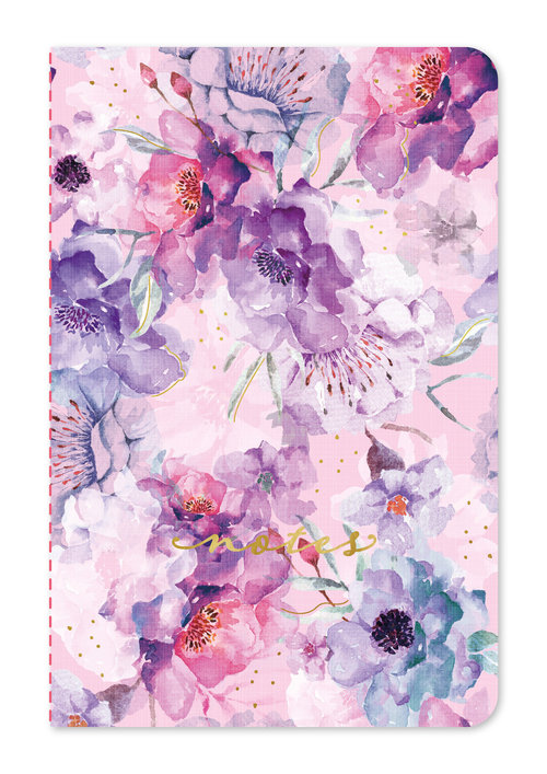 Romantyczna seria notesów z okładką zdobioną ilustracją kwiatową oraz subtelnie tłoczoną złotą folią.