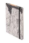 zaokrąglone rogi,wnętrze: wyklejka z czarnego papieru ozdobnego,kolor papieru: off white, miejsce na datę,koperta na luźne karteczki,,wstążka i gumka zamykająca