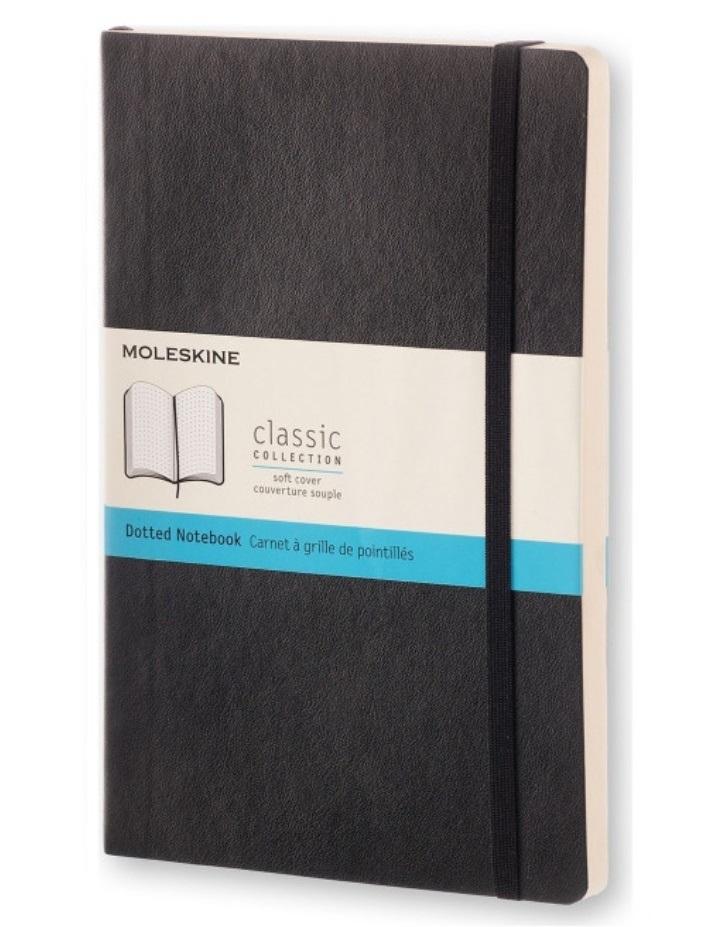Notes o wymiarach 13 x 21 cm w klasycznym czarnym kolorze. Posiada dodatkową kieszonkę na luźne kartki, czy wizytówki. Zamykany na gumkę oraz wyposażony w przydatną materiałową zakładkę, w pasującym do okładki kolorze. Notes wypełniony jest bezkwasowym papierem. Miękka oprawa o charakterystycznych dla Moleskine zaokrąglonych rogach nie wystaje poza linię kartek. Zadziwia ona elastycznością i odpornością. Dodatkowo dzięki niej notes jest tak lekki, że nawet nie zauważysz, że zawsze masz go przy sobie.