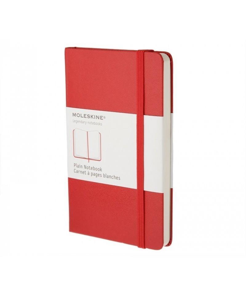 Legendarny klasyczny notatnik Moleskine czysty (papier bez linii i bez kratek). Wersja mała, kieszonkowa w rozmiarze 9x14 cm. Zamykany gumką.