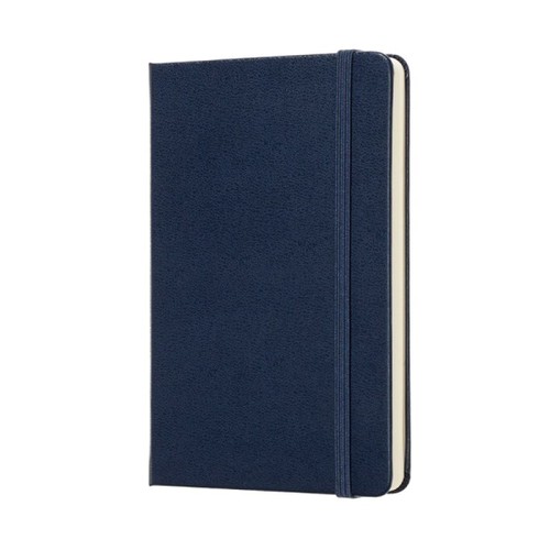 Notes marki Moleskine Classic w rozmiarze Pocket (9x14cm) gładki. Zamykany na gumkę. Okładka twarda w kolorze szafirowym
