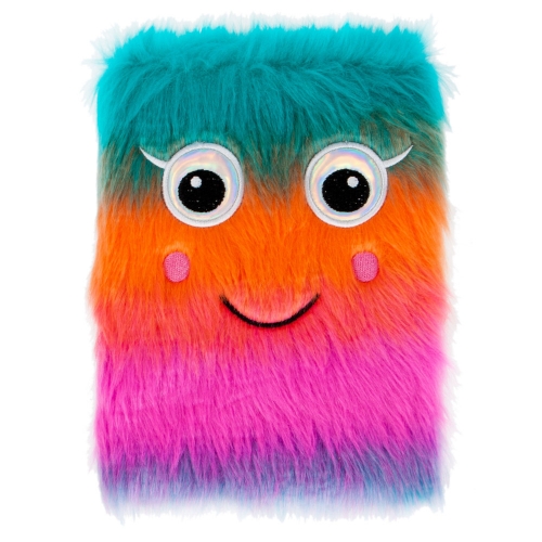 Pamiętnik o wymiarach 14,8 x 21,0 cm z motywem uśmiechniętej tęczy. Cały pokryty przyjemnym w dotyku pluszem. W środku kartki w linie. Idealny pomysł na prezent dla najmłodszych.