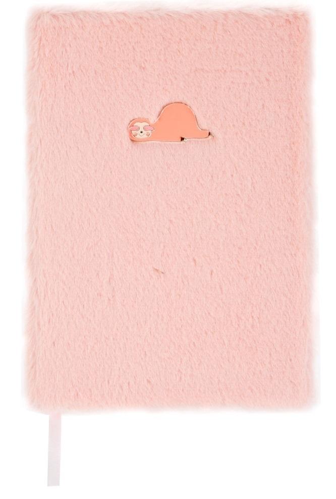 Notes w formacie A5 z pluszową okładką i kartkami w linie.