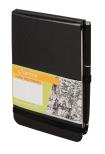 Notes A 6 reporterski z długopisem Oprawa twarda, ekologiczna z surowców naturalnych. Papier 80 g. Pierwsza i ostatnia strona notesu wykonana z ozdobnego papieru w kolorze czarnym. Koperta z tyłu na luźne karteczki. Specjalna gumka na długopis. Wstążka w kolorze okładki. Notes zamykany na gumkę.