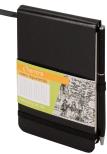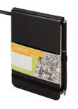 Notes A 6reporterski z długopisem Oprawa twarda, ekologiczna z surowców naturalnych. Papier 80 g. Pierwsza i ostatnia strona notesu wykonana z ozdobnego papieru w kolorze czarnym. Koperta z tyłu na luźne karteczki. Specjalna gumka na długopis. Wstążka w kolorze okładki. Notes zamykany na gumkę. Ilość stron: 160 Wymary: 90 x 140 mm