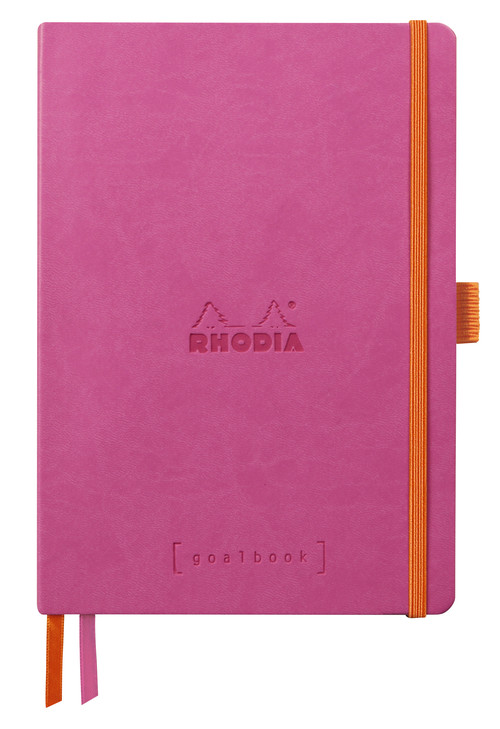 Notes Rhodiarama Goalbook, miekka oprawa FUCHSIA A5 240 stron ( 224 stron numerowanych , 6 stron indeksujących oraz 2 wieczne kalendarze.) , papier 90g, kropki , kremowy papier. Papier bezkwasowy, posiada neutralne Ph.