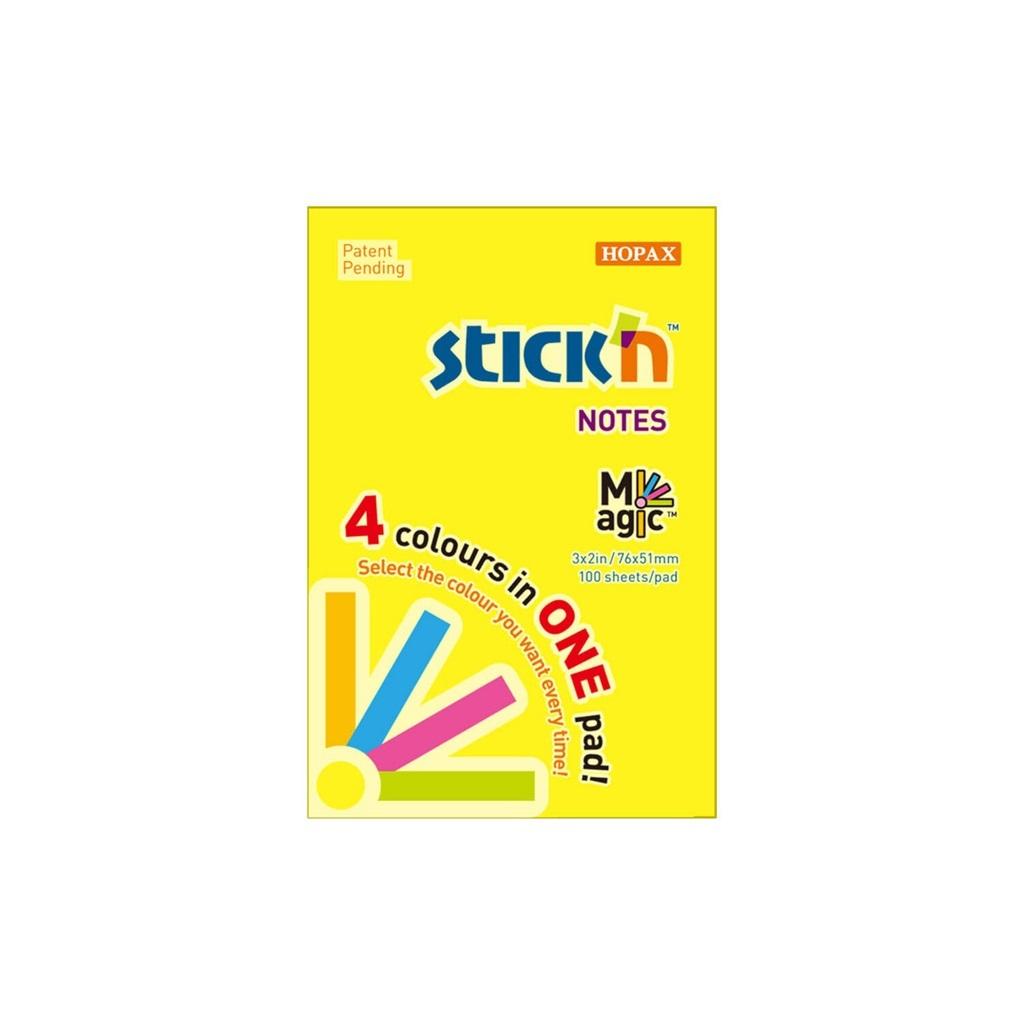 Notesy samoprzylepne Magic Pads to rewolucyjne rozwiązanie krawędź bloczka sklejona jest w sposób umożliwiający wyjmowanie karteczek w dowolnym kolorze bez konieczności rozrywania go. Dostępne w kolorach pastelowych oraz neonowych, w czterech rozmiarach: 76 x 51 mm, 76x76 mm, 76x101 mm oraz 76x127 mm.