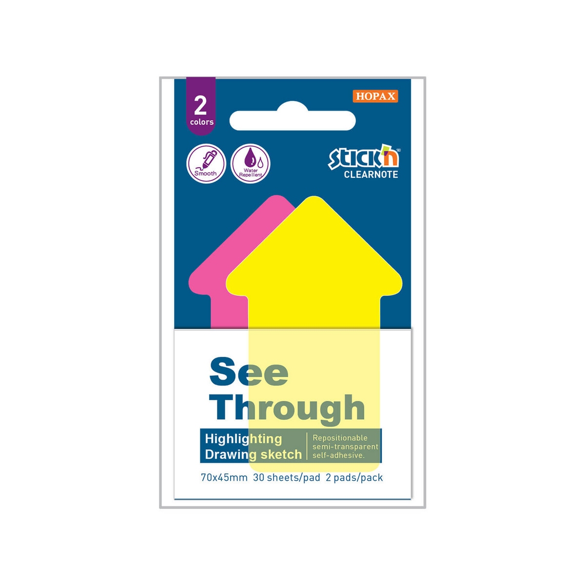 Przezroczyste notesy samoprzylepne w kształcie strzałek2 notesy w kolorze żółtym i różowym zawierające po 30 foliowych karteczek o wielkości 76 x 50 mm.Przezroczyste karteczki są idealne do robienia zapisków w książkach, zaznaczania i podkreśłania w nich treści oraz odrysowywania małych rysunków.