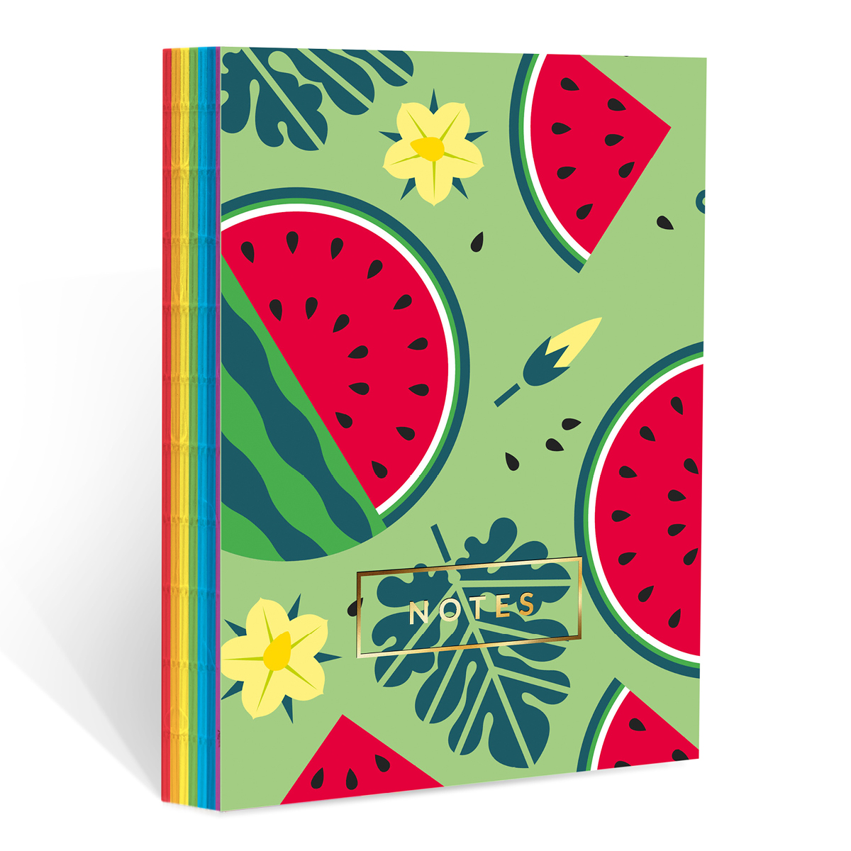 Wysmakowany notes z letnim motywem owocowym umieszczonym na brzegach notesu i na okładce. Uroku dodaje odkryty, kolorowy grzbiet notesu.