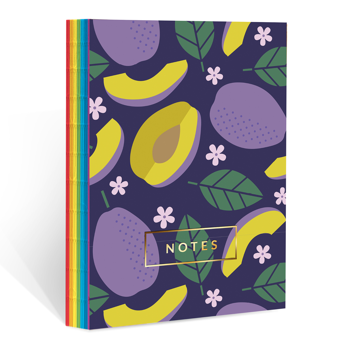 Wysmakowany notes z letnim motywem owocowym umieszczonym na brzegach notesu i na okładce. Uroku dodaje odkryty, kolorowy grzbiet notesu.
