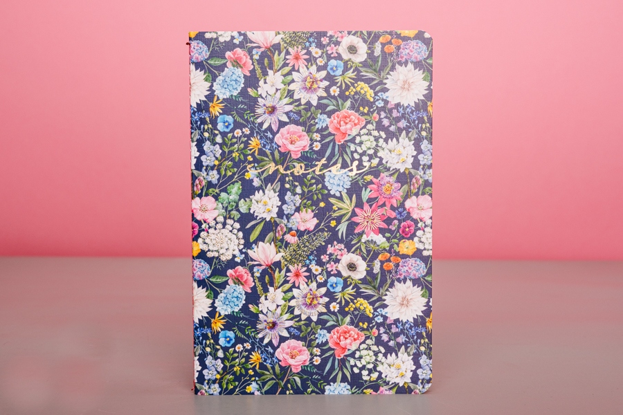 Romantyczna seria notesów z okładką zdobioną ilustracją kwiatową oraz subtelnie tłoczoną złotą folią.