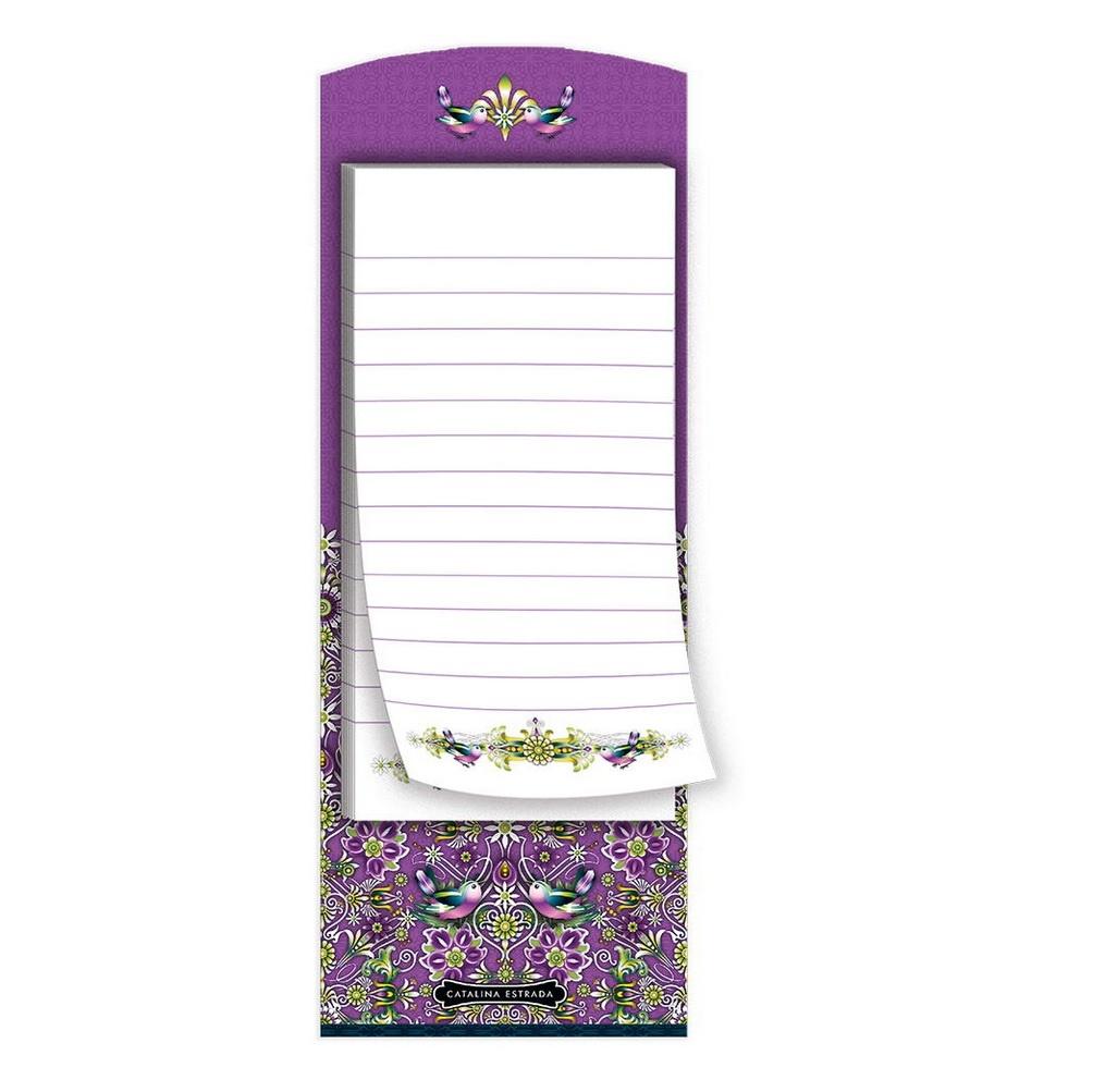 Śliczny notes z najnowszej kolekcji Catalina Estrada. Dzięki magnesowi notes można powiesić np. na lodówce. Zawiera 40 arkuszy 80/m2. Wymiary 21 x 8 cm.