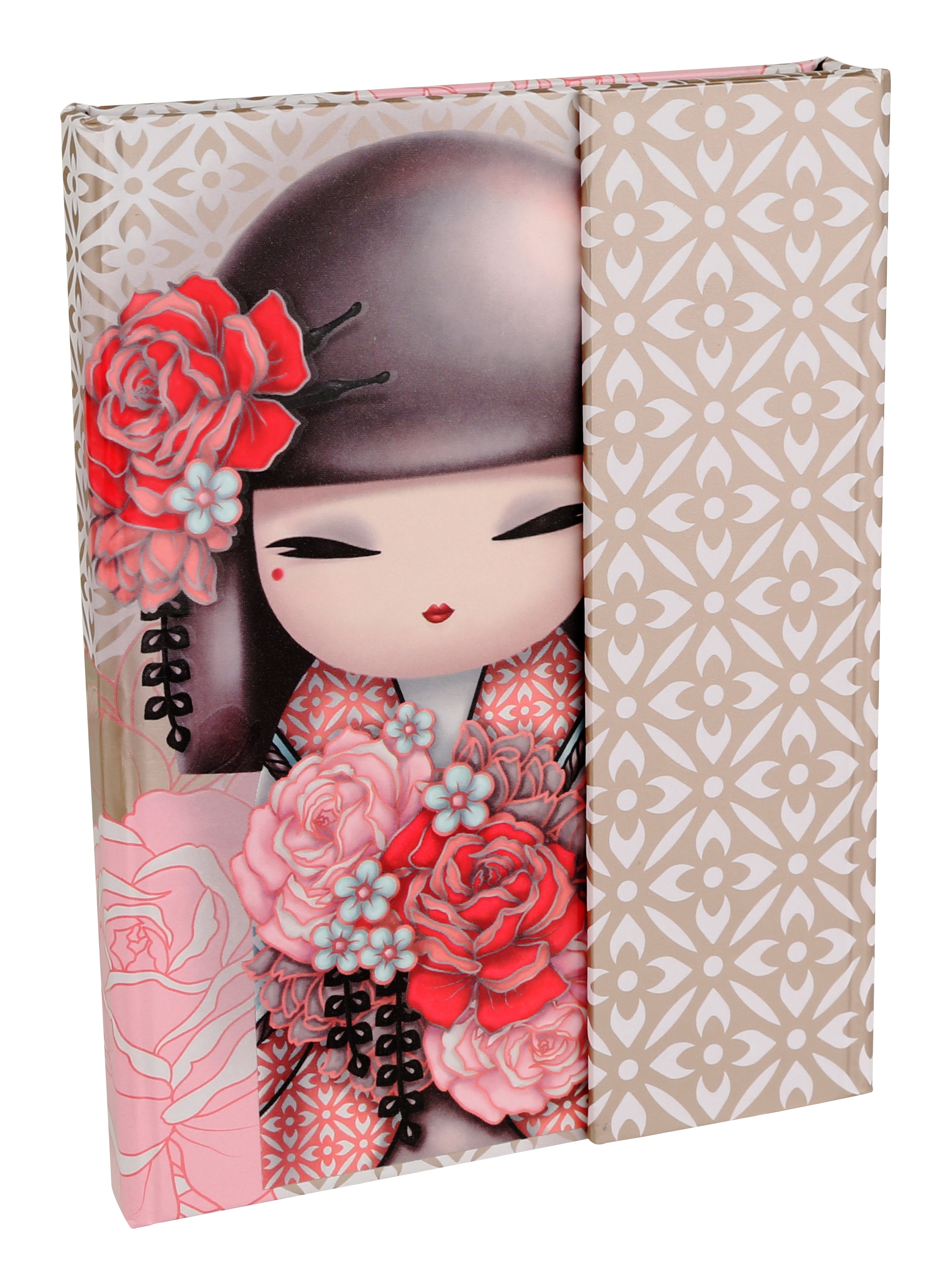 Notes na drobne notatki, do torebki z wizerunkiem kokeshi YUMIKO-miłosierna, wyposażony w lusterko w środku, zamykany na magnes. Ilość kartek 80, wymiary:12,5 x 10 x 1,5 cm.