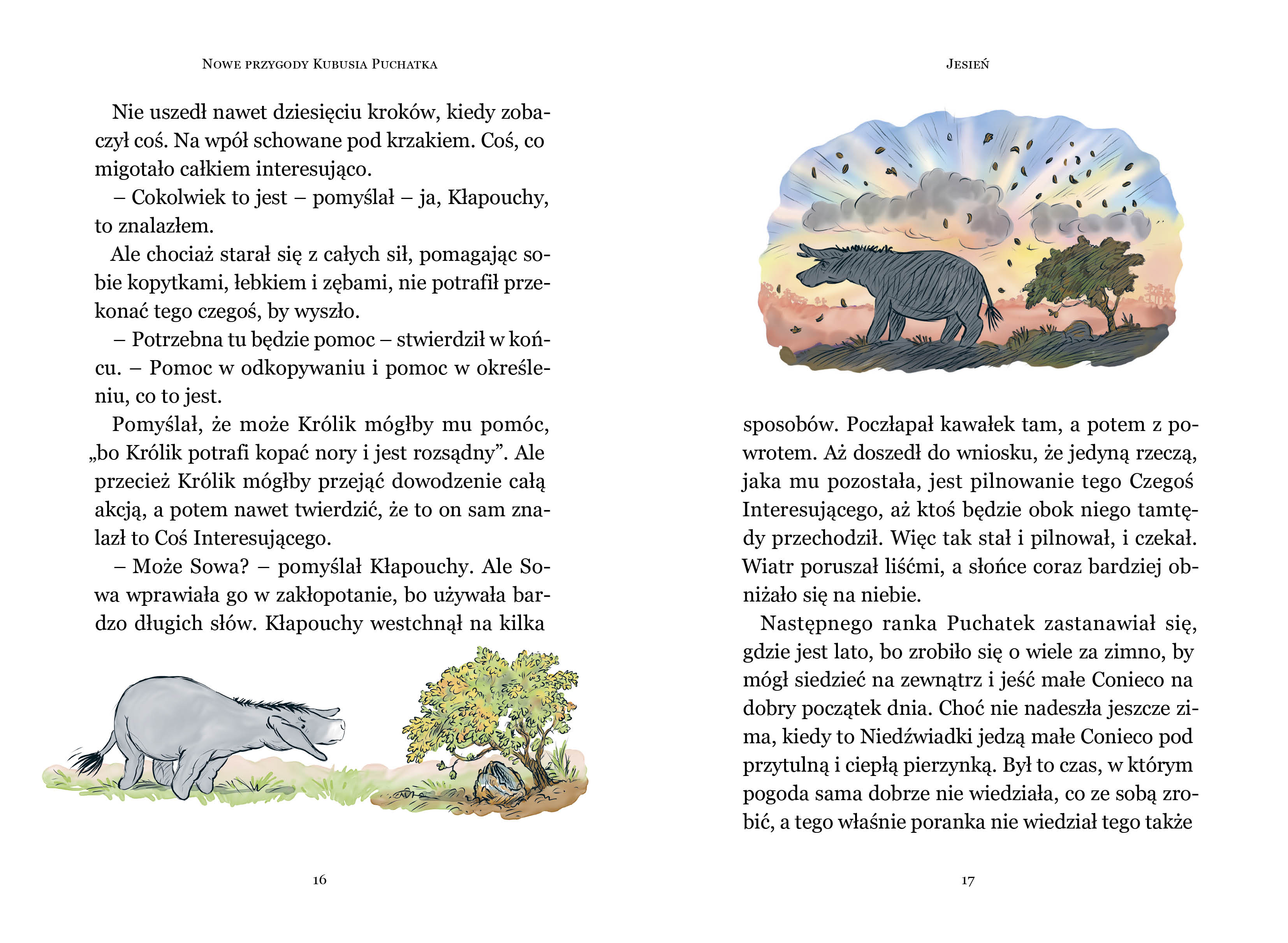 Przenieś się do Stumilowego Lasu i znów spotkaj ulubionych bohaterów z dzieciństwa: Kubusia Puchatka, Krzysia, Prosiaczka, Tygryska, Kłapouchego i resztę przyjaciół. Te ciepłe, zabawne historie to ponadczasowe lekcje przyjaźni, pokazujące siłę dziecięcej wyobraźni. Nieważne, czy masz 5 czy 55 lat. „Nowe przygody Kubusia Puchatka” to obowiązkowa lektura rozchmurzająca w każdym wieku. Oficjalna kontynuacja klasycznych opowiadań A.A. Milne’a autorstwa najlepszych współczesnych pisarzy dla dzieci z nowymi pięknymi ilustracjami w stylu E.H. Sheparda i w znakomitym tłumaczeniu Michała Rusinka. 4+ Powyższy opis pochodzi od wydawcy.