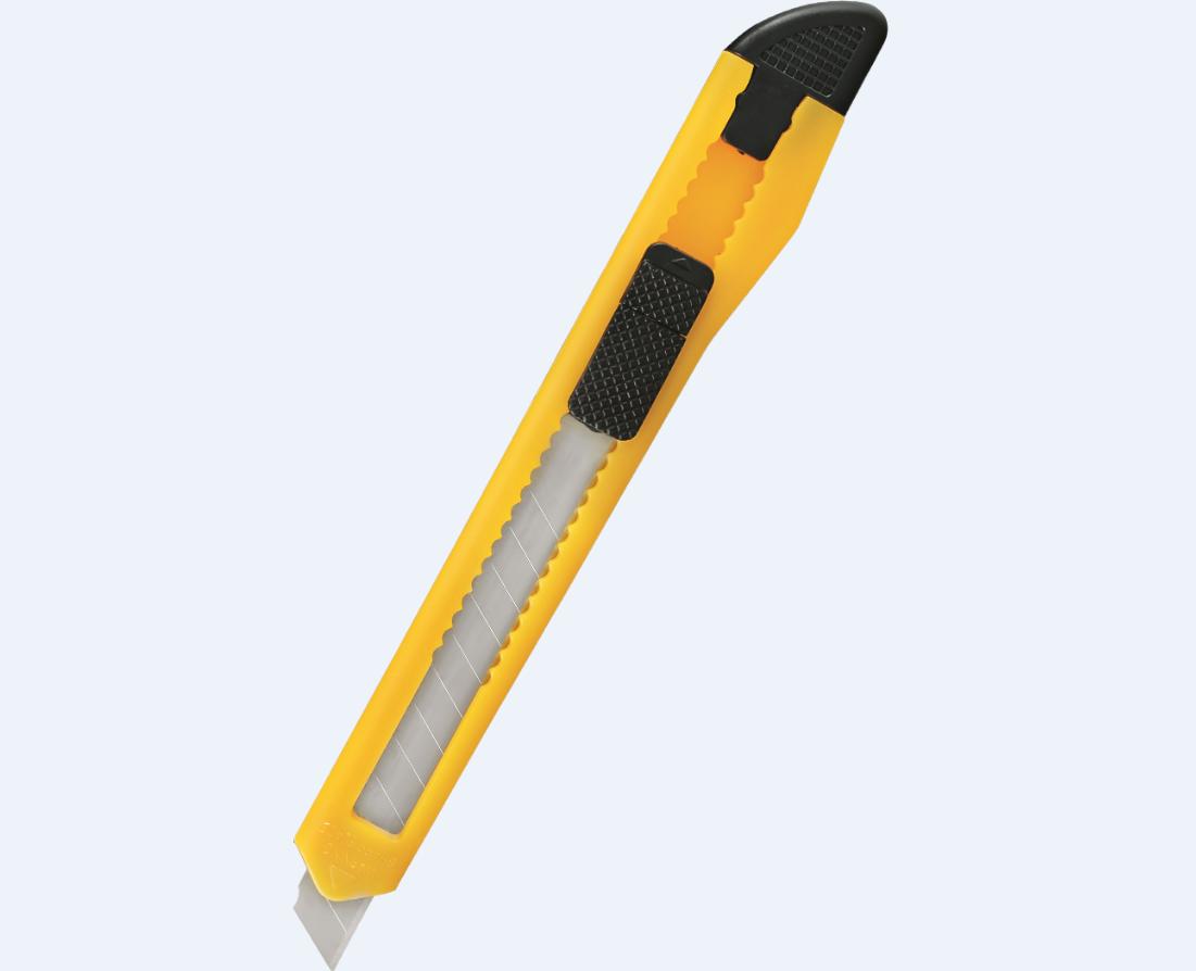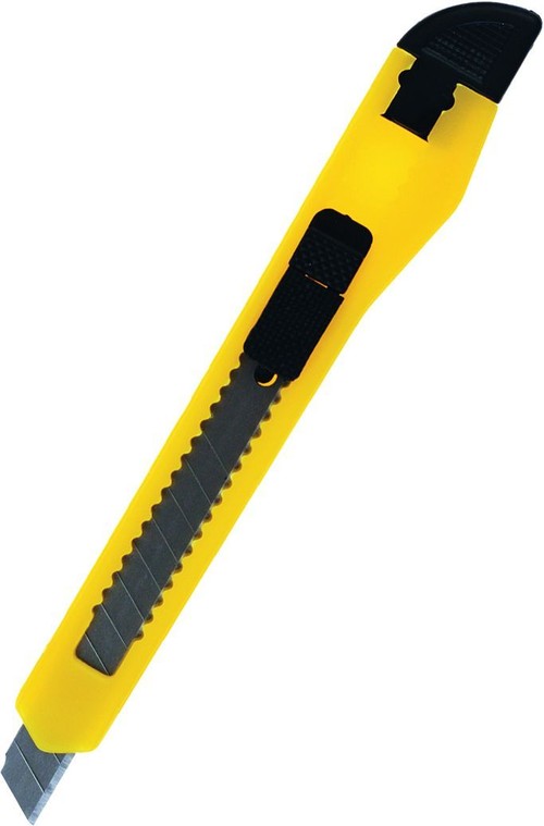 – plastikowa obudowa – wysuwane, łamane ostrze – blokada ostrza – wymiana ostrza przez zdjęcie czarnej końcówki – do delikatnych prac – szerokość ostrza: 9 mm – łamanie ostrza: 12 części