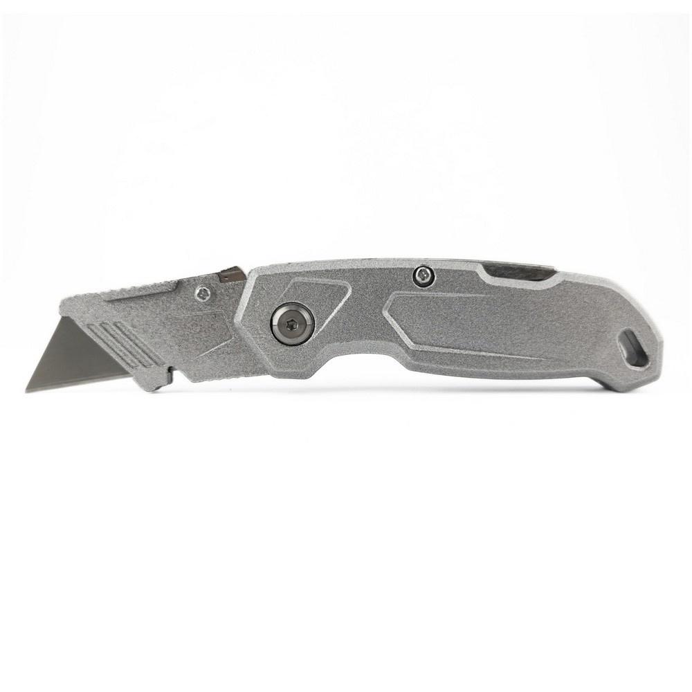 Składany nóż z ostrzem trapezowym o wymiarach 19 x 60 mm, o wytrzymałej konstrukcji wykonanej z aluminium. Solidny i trwały, idealny do cięcia wykładzin oraz innych materiałów. Dzięki kompaktowej formie i mocnej budowie sprawdzi się zarówno w pracy profesjonalnej, jak i domowym użytku. W zestawie 5 zapasowych ostrzy.