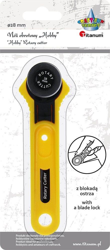 Nóż krążkowy, do cięcia wzdłuż linii prostych i po krzywiznach. Cięcie jest łatwiejsze i precyzyjniejsze niż nożyczkami. Przeznaczony do cięcia między innymi: tkanin, papieru, pianki, filcu i folii. Podczas cięcia zaleca się stosowanie maty podkładowej. Nóż posiada blokadę ostrza. Ostrze o średnicy 28 mm.