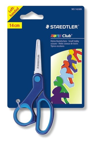 Małe nożyczki dla dzieci leworęcznych. Długość 14 cm. Zaokrąglone ostrze wykonane z nierdzewnej stali. Miękki wygodny uchwyt. Bardzo wysoka precyzja cięcia.