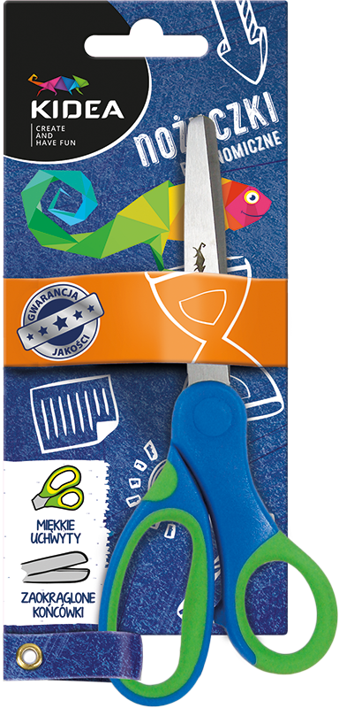 Nożyczki ergonomiczne Kidea - ergonomiczne - profilowane, miękko wyściełane uchwyty - łatwotnące - zaokrąglone końcówki - ze stali nierdzewnej