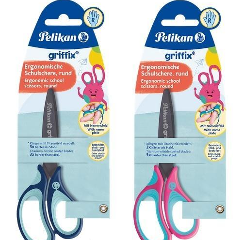 Zaokrąglone nożyczki Pelikan Griffix zostały zaprojektowane specjalnie z myślą o dzieciach tak, aby były bezpieczne, wygodne i wspierały rozwój prawidłowego chwytu. Ich ostrza pokryte tytanową powłoką są aż 3 razy twardsze od stali, co zapewnia precyzję cięcia i wyjątkową trwałość. Dzięki ergonomicznemu, miękkiemu uchwytowi, nożyczki doskonale leżą w dziecięcej dłoni i nie powodują zmęczenia. Prawidłowy sposób trzymania narzędzia sygnalizowany jest przez widoczną uśmiechniętą buźkę charakterystyczny znak kolekcji Griffix. Zaokrąglone końcówki ostrzy oraz niewielka waga sprawiają, że nożyczki są w pełni bezpieczne dla młodszych użytkowników. Długość 14 cm to uniwersalny rozmiar, który świetnie sprawdza się w szkole i w domu, a miejsce na podpis pomaga uniknąć pomyłek w klasie czy piórniku.