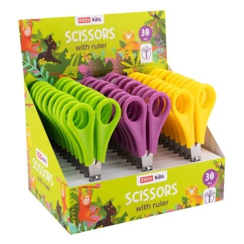Nożyczki szkolne Easy przygotowane zostały z myślą o najmłodszych. Ze względu na wielkość dziecięcej dłoni, otwory uchwytów mają mały przekrój, dzięki czemu łatwo trzyma się je podczas wycinania. Uchwyty wykonane zostały z kolorowego materiału sztucznego, który przypadnie dzieciom do gustu. Dla bezpieczeństwa, nożyczki wyposażone zostały w zaokrąglone końcówki ostrza, zapobiegające możliwości wbicia go w dłoń. Na ostrzu wygrawerowana została podziałka (5 cm), która pomaga dociąć materiał na odpowiednią długość.